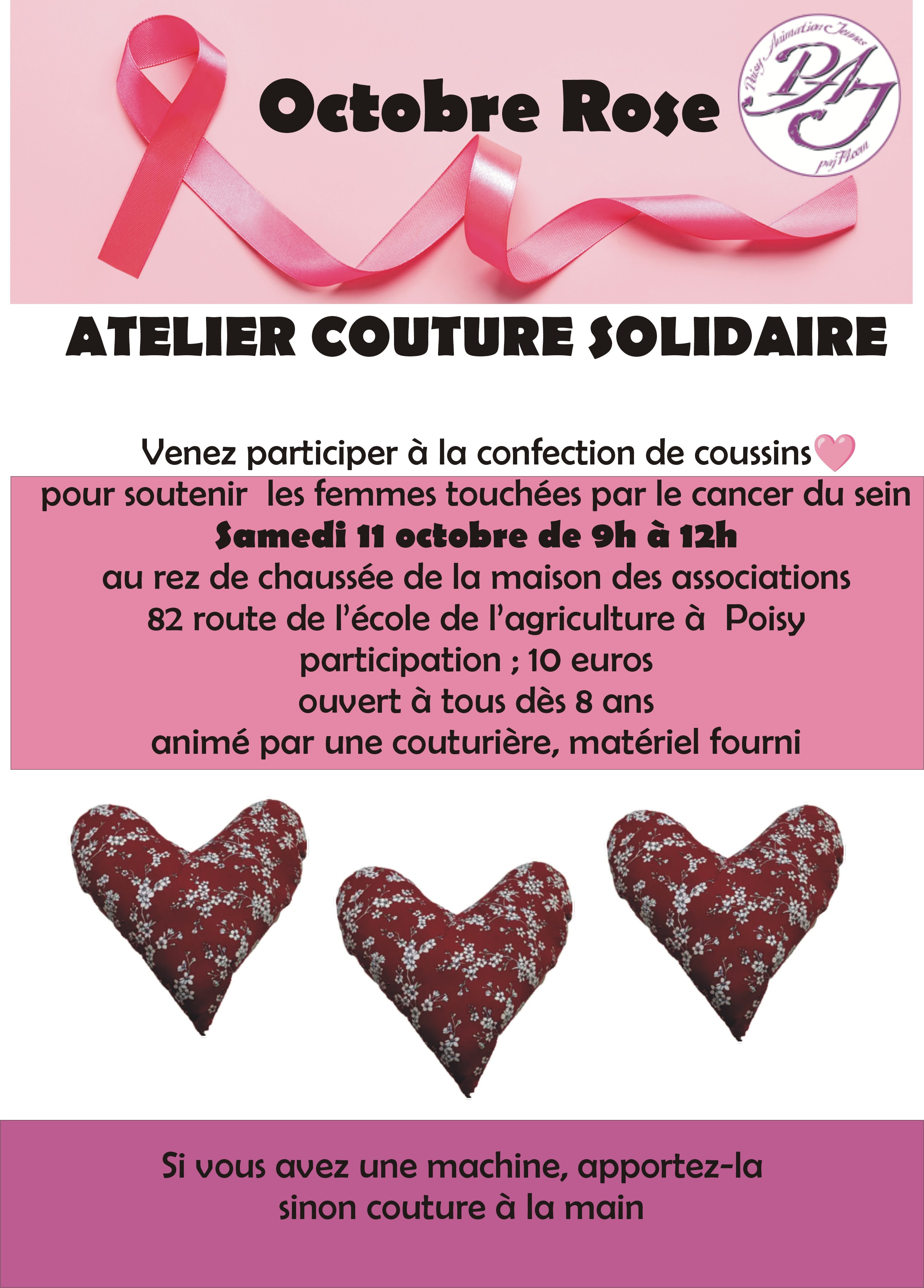 En octobre, l'activité couture organise un atelier solidaire octobre rose le samedi 11.